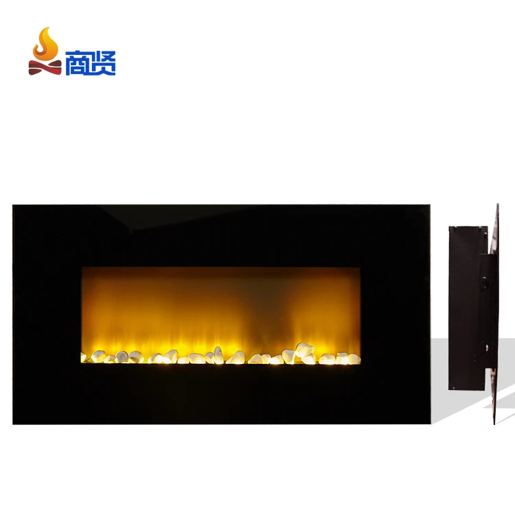Wall mounted electric fireplace glass heater fire remote.